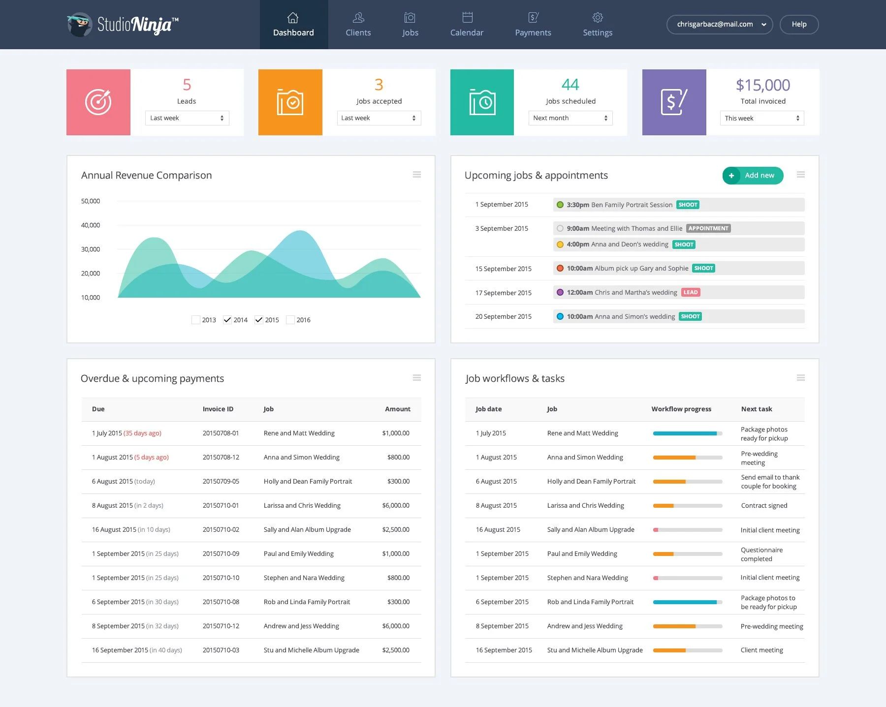 Si eres fotógrafo y quieres un sistema fácil para organizar clientes, enviar contratos y automatizar correos, Studio Ninja es la mejor opción. Olvídate de hacer todo manualmente: este software se encarga de recordatorios, pagos y comunicación con clientes.